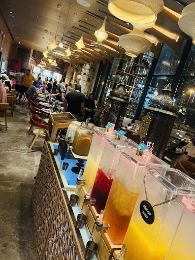 As soon as you arrive you will be greeted by their charming hosts who will guide you to your table with a souk map where you can get a view of whatâs been served where .. after which you can explore and enjoy your time immersing yourself in this middle eastern inspired beautiful space.