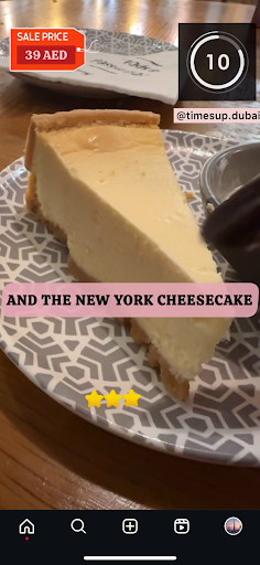 New York Cheese Cake: Price: 39 AED (Costed around 19.5AED because of the Buy 1 Get 1 Offer). Served with: Vanilla Ice Cream. Taste: Creamy. Comments: Chocolate Cake stole the show and made it look bland. Especially the combination with vanilla ice cream. Rating: 4/5.