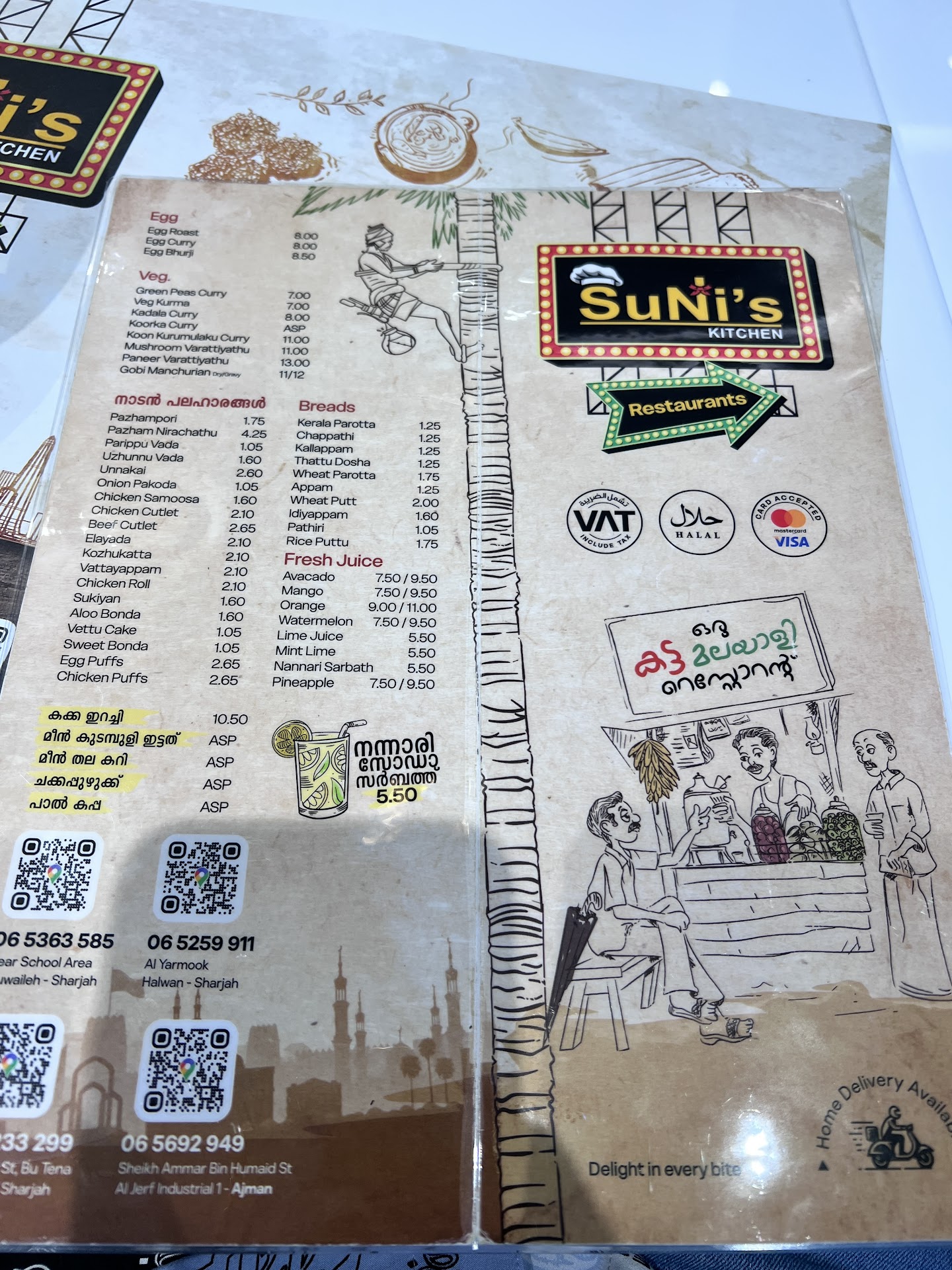 Sunis Kitchen in Yarmook, Sharjah, is an absolute culinary paradise that transports you to the flavors of Kerala. From the moment you step through the doors, you are greeted with warmth and a genuine passion for creating remarkable dining experiences.