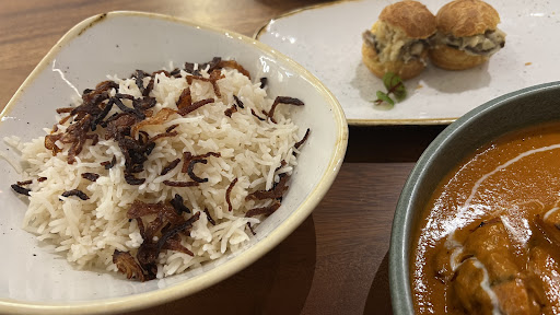 We started with the Caesar salad, which was fresh, crunchy, and generously topped with Parmesan and croutons—just the right way to kick off the dining experience. For mains, the butter chicken was rich and creamy, with tender pieces of chicken cooked to perfection. It had just the right amount of spice to complement the dish without overpowering it. The chicken biryani was another highlight, with aromatic rice and well-balanced spices that made it comforting and flavorful.