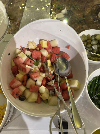 The fruit selection was equally disappointing — just one bowl with all the fruits mixed together, making it feel more like an afterthought than a proper offering.