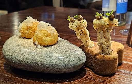 The first amuse was a shimeji mushroom delight, followed by pumpkin and parmesan. A South African Cinsault paired wonderfully with the flavorful beef tartare. Next came the bread and butter; the crust was crispy, and the taste was plain.