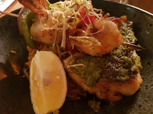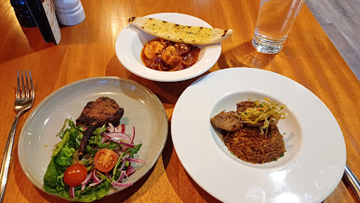 Read moreIt was my 68th birthday.. I pinged for African food as I grew up there I reserved a table for 2 as there was no option for one I arrived early and looked at the prices on the menu. I wanted the beef stew but it was £19:99 as was the Mac N Cheese. I feel that the prices are unreasonable. There were not many patrons there quite a few white people and some Nigerian couples. My hopes of meeting a lady there were unrealistic. I ordered lamb suya which was a starter of BBQ lamb slices and a small green salad £10 and a side of chips £4 The lamb was so moist and tender but there was not enough. The chips were in a small basket and were crispy and not greasy. Afro beats set the mood and after my 3rd can of Red Stripe lager (Jamaican) I got a bit teary eyed I ordered plantain cake and ice cream which came with caramel sauce and a little dab of whipped cream and a sliced strawberry on top. It was heavenly. In the back of my head I thought I had spent about £25 I was a bit shocked when the bill came it was £43. The Red stripe was about 4.99 for a 330ml can The service was great and the beer was cold and it was very chilled. I think the resteraunts is more Jamaica/American food oriented to cater to the English who are unfamiliar with African food. I wanted grilled tilapia and yam but not able to order off the menu. The resteraunt is spotless bright and uncluttered. Food presentation and quality also good. I gave 4 stars because of the prices and portion size and it's not a pure...