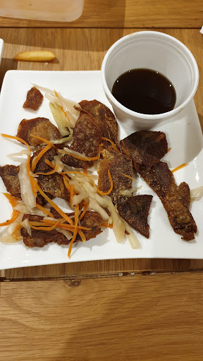 Appetiser was genuinely inedible. Listed in the menu as "crispy lamb with a pungent soy and garlic dip" but what I found was a single cut of lamb donner that looked like it had been found under the fridge a month after being cooked. It managed to be both rock hard and rubbery at the same time. Quite an achievement I must confess. The dip wasn't a dip either. It was just soy sauce straight from the bottle. Just to be clear, the picture I have added of it to this review is the entire portion straight out of the box (although you may be forgiven for thinking it was leftovers from a kebab from several weeks ago).