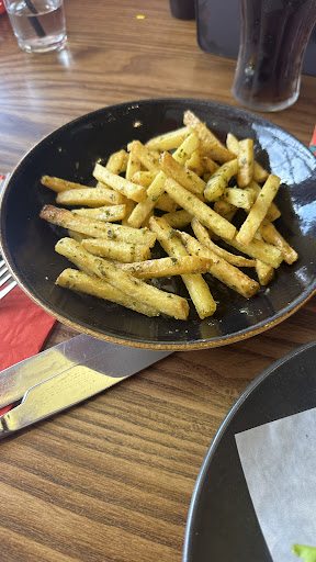 The restaurant was very cold, so much so that I had to wear my thick outdoor winter jacket and had to put jackets on my two toddlers. The food took a very long time to arrive, almost a full hour. We noticed that the tables before us and after us also had no food. When my ribs arrived they were barely luke warm. My wife's Steak Fritz arrived literally as a bare steak on the plate, none of the fries or vegetables made it to the dish, and the steak was 'just warm'. To the waiters credit, when we mentioned that the rest of my wife's dish was missing, he apologised and quickly brought out the missing veggies and sides.