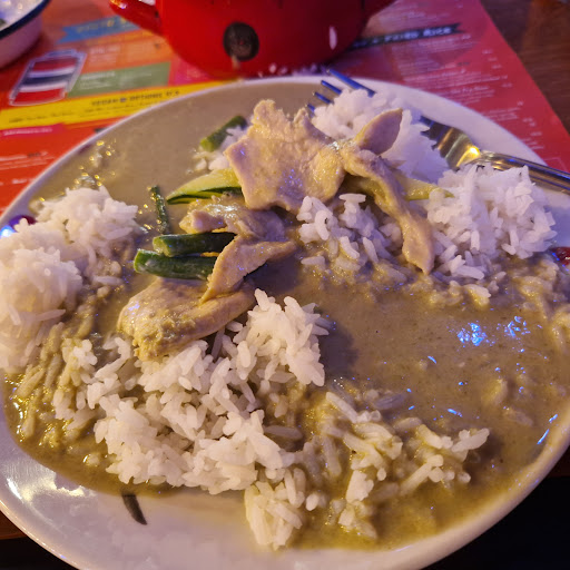 Read moreFood was a bit of a disappointment, the starter of four pork and prawn dumplings arrived on my plate as one single unit and tasted like it had been squeezed from a Gregg's sausage roll... of which I am a fan of, however it wasnt worth the £7! The main course was described as a curry however arrived in a bowl and was a soup which I had to fish through to pull the chicken out.... very tasty but took a bit of time to get the chicken out, with the majority of the sauce left in the bowl I asked for some sticky rice to soak use some up, this arrived as a single block of rice, a bit like it had been overcooked and absorbed all the water therefore dried out together, although it was sticky, only in terms of being stuck together, I was unable to part it and seperate it, the parts which I did were just chunks.