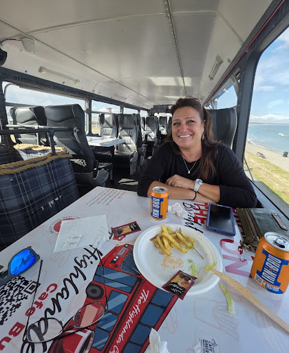 Read moreFood does the job nothing special but no complaints there, great atmosphere nice bus and nice views great place Service is terrible freezing cold conditions outside rain or storms and they still make you wait outside to read a menu then order before been aloud in the premises very strange way to work tried this place a few times after standing there for 15 minutes today with no one there then after I knocked they appear to then bee told we can’t sit inside at all that’s the final straw I won’t give this place a chance again there service is very poor very disappointing considering they have a nice van and spot to make things work they just don’t have the service. My belly is now full from the great service and better tasting food from the burger van down the bottom the girls have always been lovely and ready for your business. Hopefully they sell this van and let some one else provide a lovely service and use this great van to the...