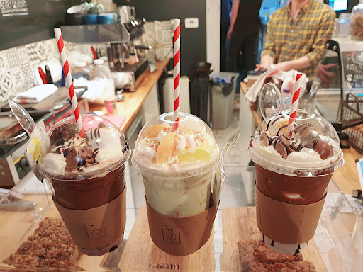 Read moreI've been searching for freak shakes in Aberdeen and found this small but cute cafe!! Because it was so small there weren't any seats left for us and so we had to take away. The staff were super nice and friendly. They said they could give our freak shakes in take away cups and will make sure it's instaworthy. Lovely people! I couldn't imagine how it would look like as a take away. I was blown away by how cute they were! They were a masterpiece. Not only did they look good, they taste amazing! We ordered the matcha honey, aero mint, and choco fudge. We also ordered a kinder hot chocolate. All were amazing! Of course they were super sweet but that's what you'd expect from ordering a freak shake. Will definitely go back. Hopefully there will be seats and this time, I'll have...