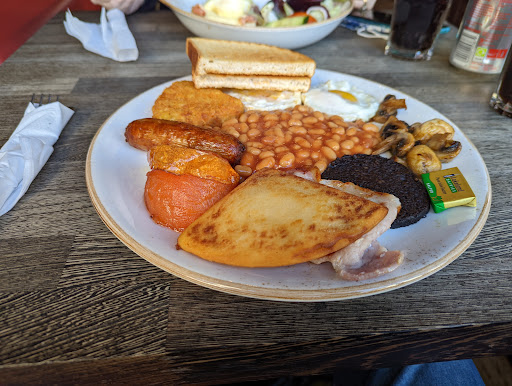 Read moreNice staff, but the the food prices are terrible for what you get. £12(online menu states £9.50) for a full breakfast gives 1x link sausage, 1x potato scone, 1x hash brown, beans, 1x rasher of bacon, 1x small plum tomato, 2xeggs, toast. I received about 3x cubes of mushrooms. The black pudding slice was about 2mm thick. The issue here is this is a premium price for less than supermarket grade breakfast items. The meat items were far less quality than halls or equivalent. It seemed that a few people had ordered the breakfast and the chef was rationing the items. Maybe i’m spoiled in Glasgow, but you’ll pay half the price for quality items like stormoway black pudding, butchers sausages, haggis and bacon sourdough bread, and a choice of how you want your eggs done. Girlfriend got pancakes and they came out...