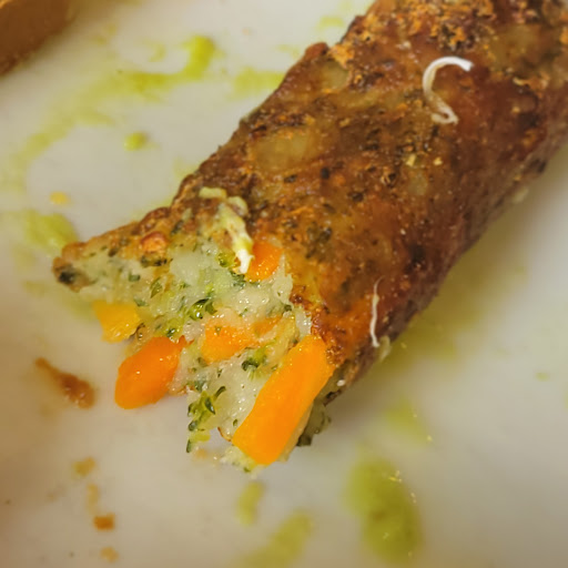 I think we're past the time when vegetarian breakfasts were a compromise - a regular breakfast with the meat removed and more mushrooms added in. Many places now serve great vegetarian and vegan breakfasts that are nourishing, filling and very tasty, and compete with meat breakfasts on their own terms. Not so much at Teddy's. The good parts are the toast (done to perfection), the tomatoes (melt in the mouth), eggs (nicely poached) and avocado (perfectly ripe). The mushrooms, however, were well-cooked but smelled "farmy". Have they just been boiled, unseasoned? My main moan is with the sausages. They taste like someone has blended up the leftover potatoes, carrots and broccoli from a Sunday roast and deep fried them. But mostly the potatoes. This is a real shame as they could be the star of the show, complemented by all the other items already mentioned. But instead, it feels like you're filling yourself up with empty carbs and starch. Add to this the fact that you get two large hash browns (nice ones, as it happens), then your really feel like you're still in the bad old days of giving vegetarians loads of "sides" and hoping they'll be satisfied. I really hope the chef takes notice and tries an alternative. Quorn sausages would be good, or seitan, or tofu... There's a really good chance to make this breakfast a standout. Currently, it is...