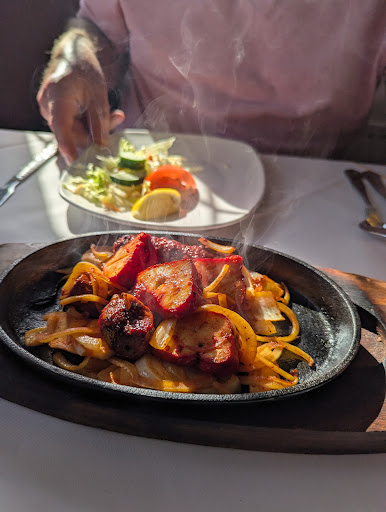 We made a reservation for 7:45 on Saturday evening, on arrival we had to wait close to 20 minutes. When we where eventually shown our table it wasn't part of the main seating area but some side annex which was small and featureless except for the 2 other parties parked either side of us. This didn't start well. It then took a further 20 minutes till any orders where taken, we then waited a whole hour before any food came out, that was a joke in ots own right, however they really excelled when they bought us out the mains and not the starters so had to wait even longer.