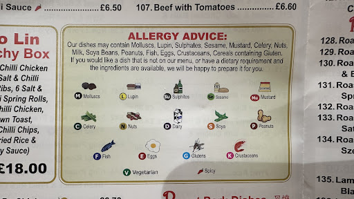 Read moreWe had a flyer through the door today, so thought we’d try this out. I have a sesame allergy so I just wanted to query their allergy menu, it’s really important and something that shouldn’t be taken lightly. I noticed on there that sesame prawn toast indicates there is no sesame at all. See photos. Playing devils advocate I asked about this and was told I can’t have it, which seems fair but my question was how can I know if sesame is in anything else if things aren’t labelled correctly. I don’t think the lady understood me so instead, I asked if anything else at all in the menu contains sesame and she had no idea, seemed quite frustrated about me asking these questions. So I guess if you don’t have allergies you’ll be fine but for anyone with allergies, this could be a real hazard for you. I’d hate to see a news story go viral down to something so simple. Its actually a legal requirement for food establishments to correctly label all allergy risks....