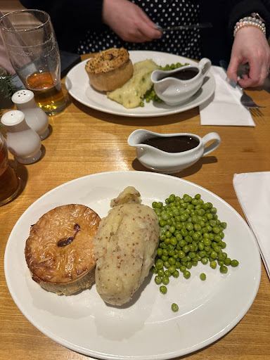Read moreWe visit once every few months, usually for a carvery which is served on a Wednesday and Sunday. Booking is definitely advisable, especially if you are taking dogs to ensure a suitable table is available. We had a second sitting today, starting at 1.30pm. There are various size options available - small, medium and large. One of our party had the small meal which was still pretty big with two slices of meat. There were four meats to choose from: beef, turkey, pork and gammon. Between us we tried them all and they were all very tender. There was a good choice of vegetables - carrots, red cabbage, peas, roast parsnip, mashed potato, roast potatoes, brussel sprouts. There were plenty of trimmings too: Yorkshire pudding, stuffing ball and sausage. Sadly there were no gluten free alternatives but there was gluten free gravy available. We all enjoyed our lunch, and a variety of drinks - there is always a good choice of ales, including Old Speckled Hen, Abbot Ale and a couple of others on draught. This time we were too full for dessert. The atmosphere is nice and friendly and there were lots of staff members on hand for answering queries etc. The only 'downside' is the small car park but more parking can be found within the village. It's also a lovely location to have lunch and take a walk up to Shipley Hall. Nice pub, and we...