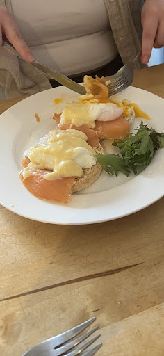 We ordered our food. My daughter chose the eggs Benedict which was lovely. I chose the cheese and chorizo baguette which was not as I expected. I was expecting diced chorizo but the baguette came with sliced packet chorizo which you buy cheaply from the supermarket. It was okay, but nothing special.