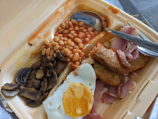 Bacon was fairly good, well cooked in some places others not so. Toast was fairly good considering we had take away.