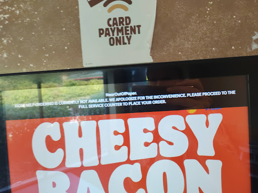 Read moreWe came to check after bad reviews with my friends. Staff was happy and welcome. We ordered 2 times Whooper and 2 cheesburgers plus 4 fries for 9 pounds ,from the promotion leaflets someone gave us inside. Whooper was warm and very nice (not expecting this) cheesburgers was crap as always, but when I asked for my receipt they just run out of the paper so I cannot have my free Whooper plus regular drink and fries for 2.50 so instead they gave me a loads of leaflets with promotional codes. If you order over there always check if your food is OK and warm otherwise ask for replacement this what I am doing everywhere. Higiene is poor and this morning they had a message that mashing is broken and they cannot serve any Beef only chicken hmm.... so I ordered Chicken royal which was nice sizzling hot and King fish sandwich and this one was awful plus they put bloody fish fingers inside ( if I want fish fingers I will go Iceland and buy fish fingers. Overall 4 stars because of guys was nice and gave us loads...