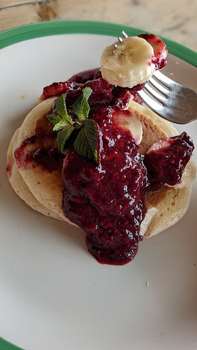 We got our drinks in about 5 mins which was fine however after 50 mins I asked where our food was and was told it was "2nd in line" it took another 20 mins for food to arrive. My wife had the maple pancakes which were fine but the portion was small for the price.