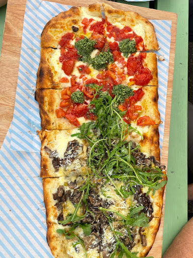 We were hungry, so gave the pizzas a try. Yum! The pineapple pizza, with pineapple soaked in vanilla rum, was a huge winner (this was a special). My partner had the devilled pizza and enjoyed it, too. The dough balls were absolutely loaded with pesto and were delicious! The staff are warm, friendly and could be seen quickly attending to cleaning tables and carrying away empty glasses. They run a tight ship!