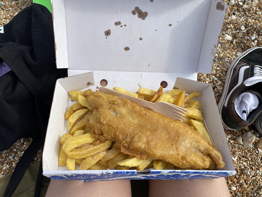 The staff were helpful and friendly. The chips were superb and the fish was great. A lovely light batter that shows the oil it was cooked in was fresh. Don't understand all the negative reviews. Only blemish was that there wasn't anywhere to sit because a load of old people took the seats in the adjoining ice cream parlour to do their knitting and drawing 😂 we did get offered £75 in exchange for our child for chip forks......