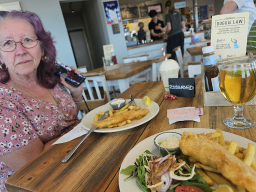 Read moreGreat food, cafe is right by the beach and there is covered outside area if inside is full. Main problem for us ( I took my 97 year old father for a birthday treat ) was the access and toilet facilities. The car park was pebbled and my father found it difficult to use his walker until he could reach the concreted ramp. The space between tables was limited and as a dog friendly cafe, it was difficult to make his way between them! Was disappointed in the toilet facilities because there were just two toilets, neither was suitable for Dad's walker ( wheelchairs would have really struggled ). A ramp was put down for Dad to get into the cafe, but it would make sense for it to be there permanently. Somebody pointed out that there were public toilets on the other side of the car park, but for disabled customers of the cafe they are too far away. If you don't like or are afraid of dogs, then this is not the place for you. A shame because the food ( we both had fish and chips )...