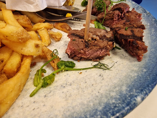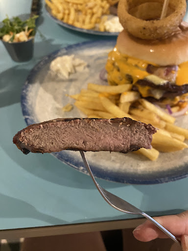 my partner ordered the meltdown burger and i ordered the £19 sirloin steak and fries. it took a while for mains to come out as the bar was full of people trying to order their food (which wouldn’t have been an issue with table service). the menu stated the steak would be cooked in garlic butter , however it clearly had never touched any as it was absolutely dry as a bone and not a taste of garlic nor butter. i ordered the steak medium, and as you can see from the photo below i would call it well done. not a great steak in itself as very thin and not much fat or rind, which is expected of a sirloin. the burger wasn’t awful, neither of us could finish it as it was very large so good value for money, however the patty’s were quite dry but that’s about the only issue with the burger