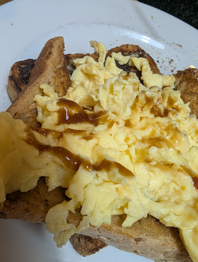 My mushrooms on granary toast were delicious - the mushrooms were sautéed with garlic and herbs, and the bread was thick-cut and toasted just right.