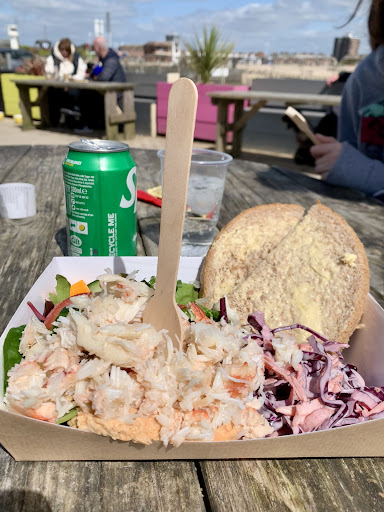 Havn't been here for ages so thought it high time to make the effort to drive down. Got parked in disabled space nearby so good start. It is tiny but luckily not too busy (Monday afternoon) so my friend and I got seated ok. Food choice for lunch is mainly fried fish, we ordered whitebait with garlic mayo, salt and pepper squid with chilli sauce and sides of sweet potato chips and onion rings. There was a small bit of greenery in the form of some rocket under the fish which was nice. When the sides arrived they were huge portions!!! We had a glass of rose each (would probably have worked out cheaper to buy the whole bottle), and I had a coffee. Views are great if you sit on the higher chairs/stools around the walls & windows or outside, limited if you sit at the lower tables inside. Customer toilet is disabled friendly on the inside, it's along a short section of decking behind the cafe. The concrete slope up to the cafe could do with a rail on the open side too, take care negotiating,...