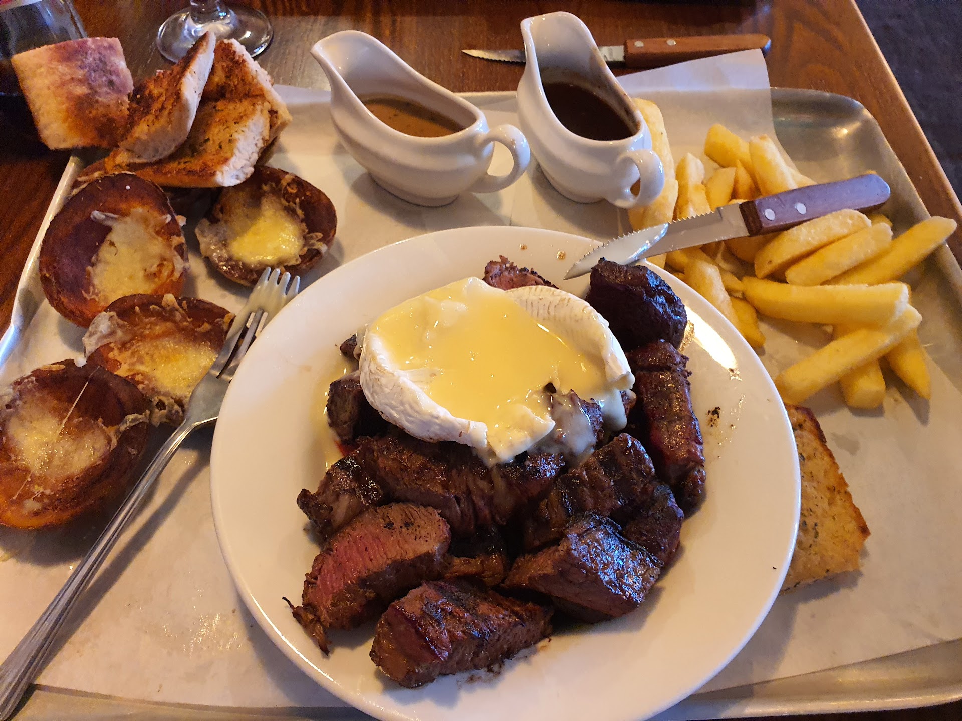 Read moreOrdered ultimate sharing player came with a hair straight through it sent it back got another one within seconds obviously not cooked up fresh looked like had been moved around in plate and brought back to us garlic bread slightly burnt and looked like had jusr been chucked on the plate to say was ultimate sharing player could have eaten it all to myself battered garlic mushrooms the smallest mooshrooms iv evwr seen wouldnt recommend as a sharer and wouldn't but again looks nothing like what is shown on the menu. Well went back to give this place another try ordered burgers was buy one get one free cut my burger to eat it and it was raw all the way through the middle had to send it back was offered another burger but refused as we where at the bar another lady brought her burger up to complain again the burger was uncooked in the middle was told sorry but the place is under new management and supposedly a new cook to be honest a chief that can't cook a standered burger in a place like this really doesn't make sence. Don't think I will be trying here again . Well I did try here again as was under new management ordered burger as they where but one get one free cut my burger and noticed it was raw all the way through the middle sent burger back was told sorry about this asked if wanted another burger I refused . as my partner went to get money back another lady walked upto the bar also complaining her burger wasn't cooked really a chief in a place like this serving so many people can't even cook a burger. Is he a chief ???? Don't think il bother giving this...