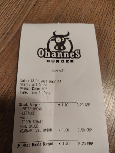 Read moreFirst visit to Ohannes and it certainly will not be the last. When we arrived we were greeted by the very friendly and helpful staff. Our food was cooked to order and was nothing short of excellent. I had a cheese burger and fries and my partner had the piri piri chicken burger and fries. Both burgers and fries were excellent and the portion of fries was huge. The quality of the food shone through. The bill was a total £19.50 for both of us . When you think a couple of quarter pounder meals from MacDonalds is around £18 and you are lucky to get a good one, coming to Ohannes is a no brainer. I really can't find fault with either my meal,the cost,or the excellent staff that made us so welcome. I must also add that the restaurant was spotlessly clean. Many thanks again to the staff at Hucknall for a great meal and service. Will be back next week. Macdonalds won't ever see us for a...