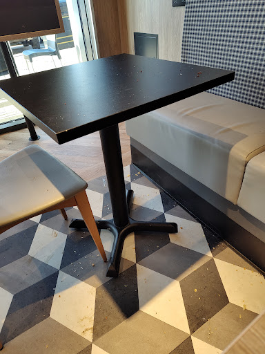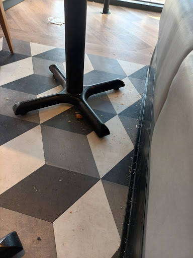After wiping down a table and chairs we stayed for half hour, during this time out of the 4 members of staff I could see no one cleaned up all the mess or emptied the...