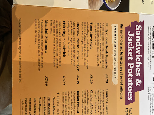 Read moreI booked a table for 5 for my husband's birthday. When we got there the bloke that served us was very vacant, we was told our table number so I let everyone go sit down while I ordered drinks, they came straight back as there was someone already sat at the table, when told that the bloke just went "oh, what drink was it again?" It was only 4 Pepsi's & 1 pint. After we finally got our drinks that we had to repeat about 4 times we sat down. We all decided what we wanted to eat so went & ordered, again was served by the same bloke. I had to say what we wanted 3 times, there was 5 meals! Food came out but they had completely forgotten to cook my son's meal, when we went to the bar, again served by the same bloke & said my son's meal hasn't come out he told us that he forgot it. No apology nothing! So my son ended up having just a bowl of chips which by the time they came out everyone had nearly finished there meal. The food was actually quite nice but the service from the bloke was awful, he was completely away with the fairy's like he was on something. I booked a table here as I had been here once before with my inlaw's for lunch a few months ago & it was lovely so after us saying how nice it was this was where my husband wanted to go but we just found the service very...