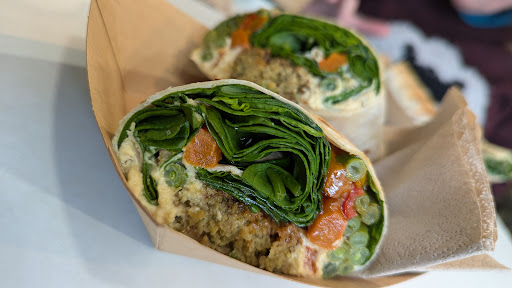 I had Falafel with spinach, roast vegetables and hummus wrap and a coffee. Food came out very quickly, plenty of filling and was delicious.
