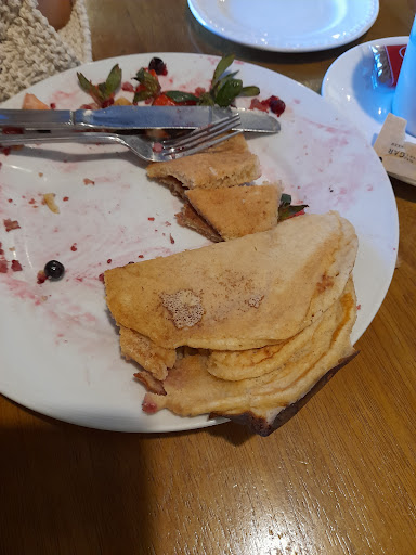 Me and my family chose this place for a light snack and drink as non of us were hungry enough for lunch. We were seated promptly and our drinks and food were ordered and brought to us by two lovely ladies. Both of my parents had a cappuccino in which both said were nearly cold and not great in taste. I, myself had a shmoo chocolate milkshake which in itself was refreshing but was disappointed to see that they do no not fill the cup it comes in to the top, so I had half a cup of milkshake. Both me and my Dad had two well toasted crumpets, dripping in butter with a lovely strawberry preserve which there was plenty of. But what my Mum and Gran decided to had for food was disappointing. They ordered a cheese and chive scone each but what they got was a dry plain scone with cheese on top and a few bits of chives mixed in the dough which my mum believed to be the same dough used for the fruit scones because it had a sweet taste to it. My mum and Gran could not finish their scones due to their lack of good taste and this left my Dad feeling guilty for choosing the place after seeing that the cafe was busy which he took as a good sign. At the end we had agreed that if asked we would comment on the scones but believe it or not the man who gave us the bill and saw us out did not even ask if everything was okay which was the last...