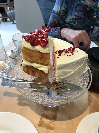 Read moreMy wife and I came here a couple of days ago because she saw all the reviews on trip advisor. Don’t expect something this good in what seems like suburbia. Anyway the light lunch options are very tasty, had the cold chicken with cold Italian pasta salad and it was very yummy and cheap at £6. However it’s the cake I guess people come here for and that didn’t disappoint. Peach Melba was fantastic, pink lemonade cake a bit sweet for me and knew I should’ve had the layered lemon cake. And the Assam tea was just delightful and wife’s coffee was excellent for cafetiere and she got her liquid pouring cream on the side. Definitely you should go but be beware of parking. Either on the main road where the cafe is and mount the kerb and hope trucks vans going past miss you or else park in a side street and...