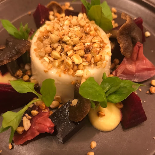 The general approach was akin to what I would describe as "classic" fine dining cuisine: the second starter was a clever take on a panacotta themed around carrot (with pickled walnut caviar - amazing!) and the two mains took two different types of mushrooms with celery and fennel as the accompanying veg. The dessert brought in some classic Italian flavours with spruce meringue, pickled orange, caramel and a gorgeous parfait.