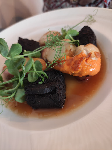 Starters and mains were all very well presented and tasted great. My partner's only complaints were the fish and scallops were overpowered by capers and the apple pure. It all tasted great individually especially the black pudding but she missed the scallop and plaice flavour. My lamb belly starter was really tasty but a little small. The duck and sausage bean stew was flavoursome but could have been a bit more generous with the meat portions.