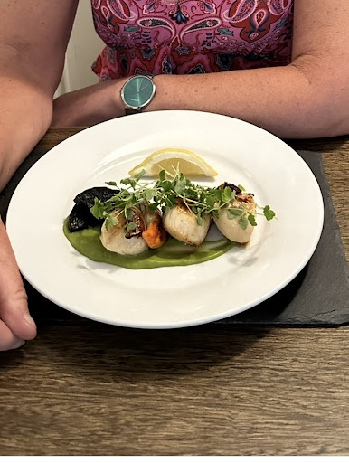 We had the beef sirloin Sunday Roast main course served with Yorkshire pudding, roast potatoes , mash and vegetables. The beef was cooked to perfection and the gravy was exceptionally delicious. Mash was smooth and creamy and well cooked vegetables. The horseradish served with it had good kick, and seemed to be homemade with real grated horseradish. We had to try the seasonal bonfire parkin cake. Although nice and a bit different from the usual menu desserts it was in need of some more sauce or ice cream. The sticky toffee pudding was light and full of flavour. The blackberry parfait was a little bland lacking the punch of blackberry I was hoping for, but pleasant enough. Although the food was very good overall, it was the service which was outstanding at this place. We were offered drinks at exactly the right moment, we were checked on to see if everything was OK, the staff were all courteous and respectful, taking care to apologise for any interruptions they needed to make to offer drinks etc. The chap running the team was meticulous in his work and orchestrated everything impeccably. This would have been our first 10/10 for service but one of the waitresses brought our last drink holding the glass by the top with her fingers all around the rim. We will definitely be returning to try the midweek menu .