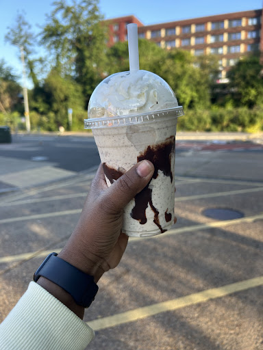 Read moreAbsolutely LOVE this place. I'm a regular, don't have much money ever which is why I like that it's fairly cheap. I always get a biscoff n white chocolate donut, they never fail to give the perfect amount of topping, n the drinks are just as divine. Every sip like heaven. The staff are so lovely too, even when it's busy they're so polite. N the atmosphere, I like the dark setting, it's much better than something bright n eye straining. Seats are comfy n sometimes I just eat in. The music is the perfect volume. Overall it's a 10/10 n the only improvement I can think of...
