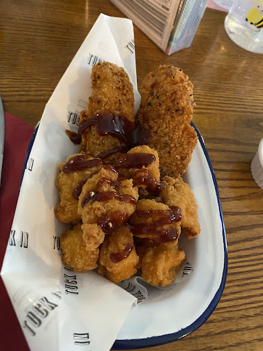 Read moreThree meals ordered, 2 x adult 1 x child. Children's s menu stated 3 filet of fish fingers with chips and beans. What arrived was two massively overcooked fish fingers with some beans and a few chips. My scampi was also overcooked and I had a total of 7 chips!!! With cold peas. The other adults fish and chips was equally poor. The bread was stale. The condiments were delivered in a metal basket but didn't fit so were teetering on the verge of falling out. In fact it arrived with only mayo and hp brown sauce and we has to ask twice for ketchup as apparently 'they couldn't find it'. The staff, while pleasant enough, were extremely scruffy. The diet coke...