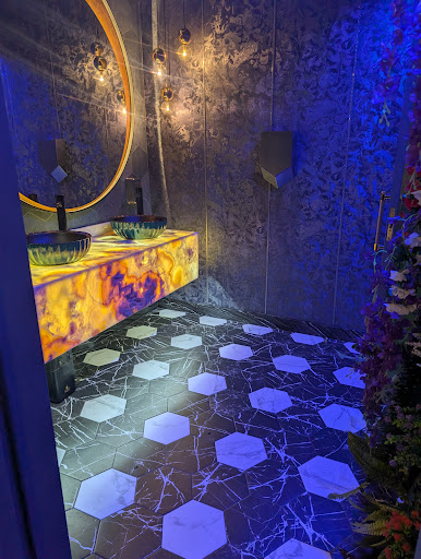 Overall, my experience at this restaurant was positive, though I found some aspects to be a bit exaggerated. The interior design, especially the sinks, mirrors, and lighting in the restrooms, seemed over the top and unnecessary in my opinion. I wanted to order a Fanta orange, but to my surprise, they didn't have it on their drinks menu. It might be because they prefer to promote fresh orange juice instead of fizzy drinks, which is understandable but still disappointing for those who want a classic soda option.