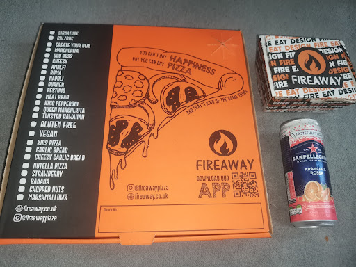 Ā Ā Ā Read moreHello, I have been eating pizza in many places but this one is unique! Always perfectly cooked, simple but high quality ingredients. The dough is delicious, you will never have any stomach problems like after other, well advertised pizzas(especially the one witch starts with d)... Iām a chef witch 15 years of experience, really fussy and grumpy š and seriously I can say only positive thinks about this pizza place. The only think witch is missing in the menu is tomatoes as a pizza ingredient, thatās it. I assume that itās because of the fact that there is a delicious tomato sous on the bottom. The Queen Margarita is almost addictivešThis is a real Mediterranean experience, not cheap american style pizza for stoners. If I could advise the owners, it would be the production of homemade garlic sous because it goes perfectly with this pizzaš. In Fireaway pizza you can also buy Italian fuzzy drinks witch have 22% of juice inside,from Bibite Polara Company(Sicily). The one witch bloody orange is so good that I started to buy it in big amounts from Italian seller. Side portions are decent, you will never complain about that. Delivery is always on time, they are really well organised. I ordered at least 10 times and it was never late. Many thanks for owners, keep doing what you are doing becouse in my opinion nobody in Basingstoke can compete witch you!