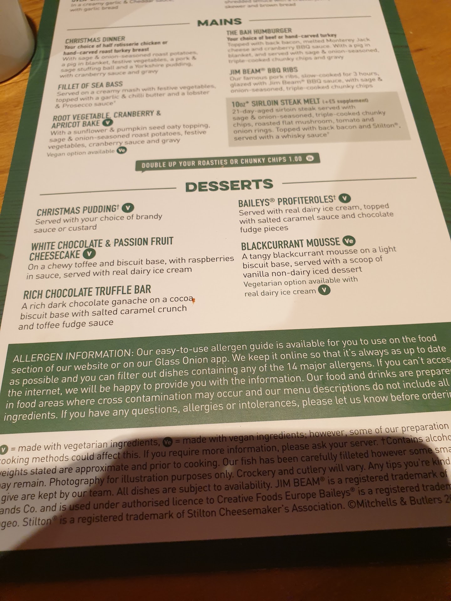 Expecting 2 of the mains, 2 puddings and 2 salad bars to be covered by the voucher. We had not been told there was a 'special menu'.