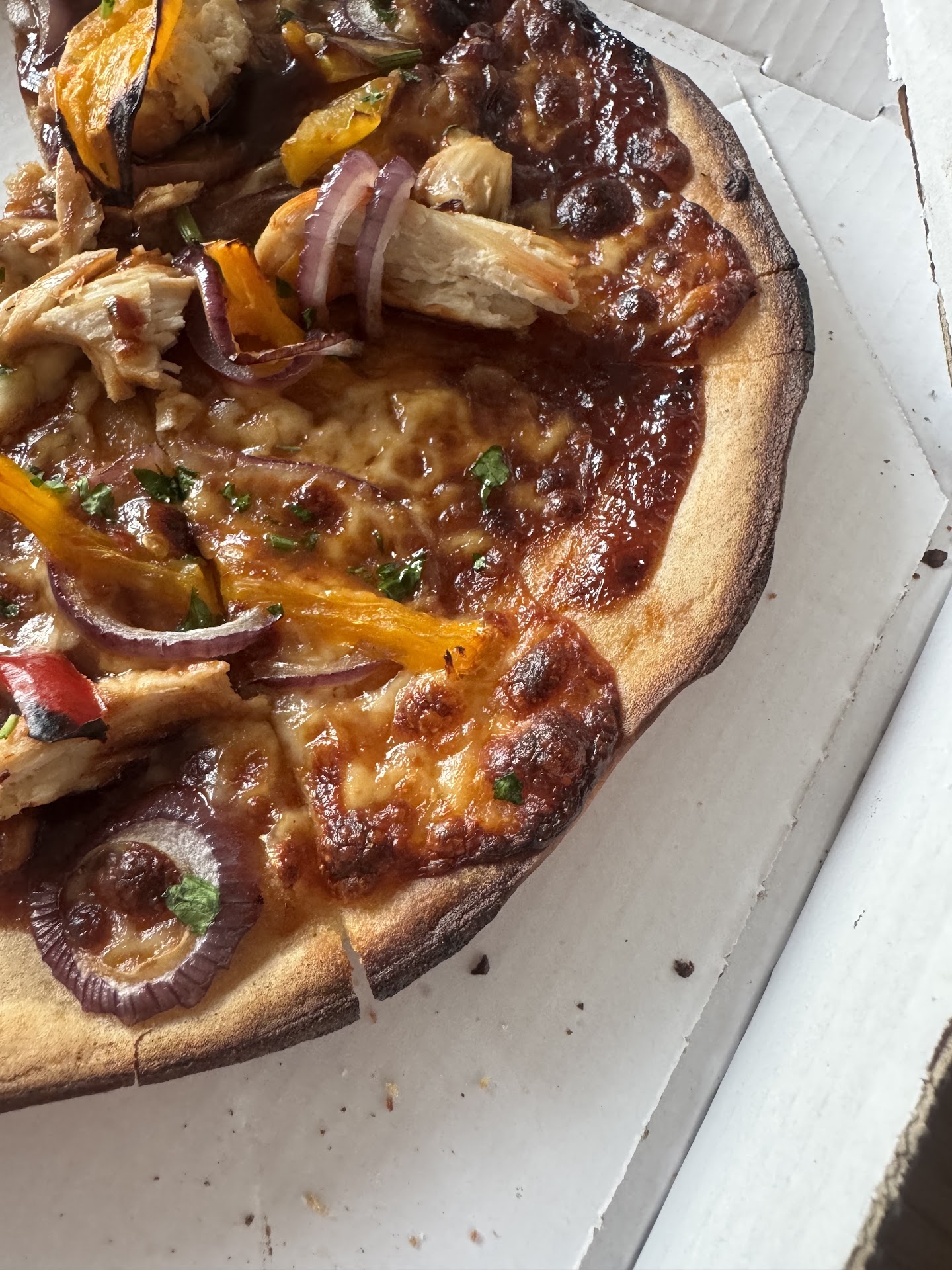 We were seated and served quickly, our order was taken promptly and our drinks arrived in good time. We had a delay in getting our mains which when they arrived were not quite up to scratch. My American had loads of cheese but was lacking peperon, my wife’s Padana had far too much chutney and hardly any goats cheese. A bit disappointed!