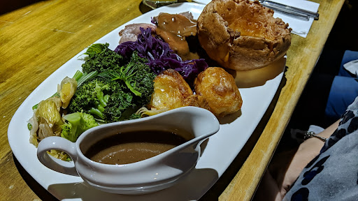 Read moreBooked two weeks in advance but still found ourselves placed at a table right next to the toilets - great start! The roast was beef that day so I asked the slightly less than enthusiastic waitress if it was well cooked as none of us enjoy the pink, half cooked experience? She said she would ask for only well done meat to be plated. One of our group opted for the veggie parsnip cranberry nut roast. When the meals arrived, one of the plates of beef was so rare it was still mooing! The veggie option didn't arrive, they sent three beefs. Not sure if the fault was with the waitress for not passing the order correctly or the kitchen for just throwing anything on the plate and ignoring instructions. By this time I knew we had made an awful mistake but we were committed. Five minutes later, a slightly better cooked beef (but still not well done) and the nut roast arrived. Our side orders had been forgotten but came after another five minutes on request. The beef was OK - just OK. The roast potatoes were barely cooked - soft but hardly browned. The 'pigs in blankets' side orders were cooked on one side, pale white and fatty on the other and not particularly tasty. The nut roast was so overbaked it was literally inedible apart from the central 'core' which had no flavour of either parsnips, cranberries or nuts. The crust on it was so hard it simply could not be cut into - rock hard. The pub was by no means busy that day, maybe half full, so not sure why food like that was being dished up. Overall, it's a pleasant enough pub for a drink but they really haven't nailed the food...