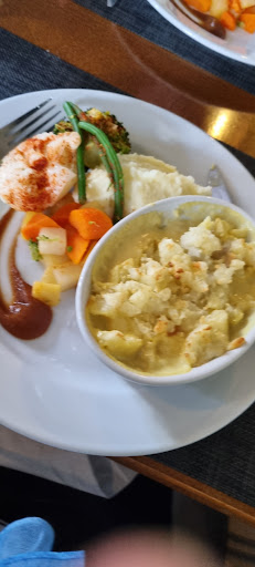 Desert and coffees were lovely the temperature on the bread and butter could have been warmer.