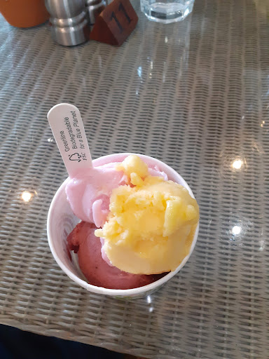 The staff always seem quite unfriendly and rather obsessed with rules for a small shop. Today we were greeted with a "one way system" which was both unclear and unnecessary. Despite observing the sign telling us to stand one side of the screen, we were then told off for looking at the ice cream, apparently too early, when there was only one customer in front of us (and it wasn't busy). Then we were told that we shouldn't have sorbet in a cone because it doesn't "bond" properly. What nonsense - it was fine.