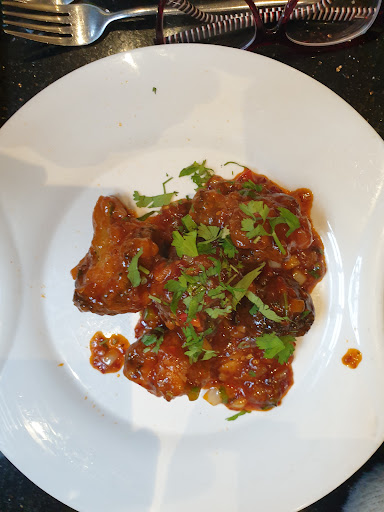 The food was uniformly excellent with each dish being distinctly flavoured and the starters in particular were beautifully plated. The menu has an excellent mix of classic British Indian dishes and some interesting/more unusual dishes without the amount of choice being overwhelming. Portions were decent sized. We probably ordered too much, ordering three main dishes between the two of us, along with two starters, a rice and a naan bread. However, it was so good that we managed to eat pretty much everything and we (I) ordered a second basket of poppadoms to mop up the remaining sauces.