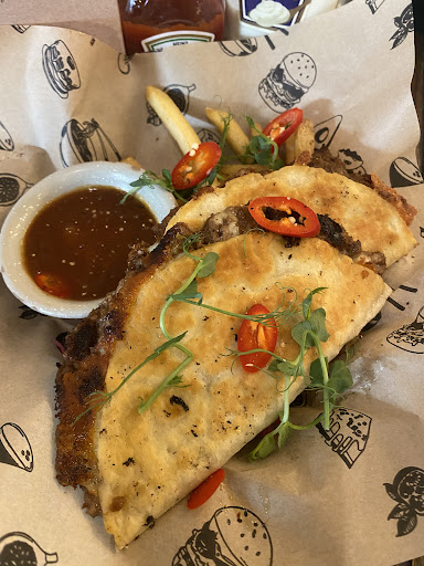 I ordered the Pulled Beef Birria tacos. They were simple but delicious, a cheesy tender concoction sandwiched in a soft taco shell. V large portion size and served on a bed of chips and salad. The stand out was the beef sauce, which did a great job imitating the real Mexican beef sauces. The fries tasted generic however, like their was no love put into their creation.