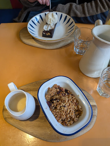 Wonderful staff, and lovely food. I'm all-dairy and beef free due to intolerances. It hasn't always been this way so I'm very familiar of the ease of eating out and choosing whatever I want on a menu, and the taste of everything dairy! The past 8 years (beef) and 4 years (dairy) have been difficult. Food is powerful, healing and all things great. Most restaurants have one or two (if you're lucky) vegan options for mains and only a fruit sorbet for dessert. It's sad and heartbreaking to have such limited options, I'm fed up of restaurants having the same vegan meal options, there's no vision or variety. BUT! Having a restaurant/cafe like Rooted is sublime. An ENTIRE MENU of choice with great tasting mains and delicious desserts is happiness - it's freedom. Vegetarian/vegan restaurants mean so much to me as there's no worry or apprehension of what's on the menu or possible dairy mistakes. We had the roast dinner - and although my mum's roast will always be the best - the feeling this Rooted Roast gave me was so great! I felt free and at ease knowing I could have it all without compromise or worry! It's been a very long time since I've eaten out and been able to share a cauli-cheese!!! I had the apple+pear crumble (yummy) and my partner had the walnut brownie (also yummy). The staff were super lovely and calm - another great sign this is the place to be as the restaurant was full and the staff were so chill and on-it. Overheard people ordering gluten free options too. All the dishes coming out of the kitchen looked very good. We will...