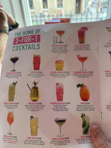 Ā Ā Ā Read moreFirstly the staff were really polite and pleasant so 5 stars to them. We started off with some 2 for 1 cocktails and they were nice and priced OK. Next we ordered 3 small starters to share which were nice. Then we ordered our mains. Firstly, it seemed to take forever to bring the meal out considering the place only had a handful of customers as it was a Monday night. I ordered steak and fries with peas and my partner ordered mac and cheese with shredded chicken in a sauce. When the food eventually came the 2 sides of onion rings and cheesy garlic bread looked nice and tasted nice enough but the garlic bread slices could of been a little more toasted as it felt more like uncooked bread. The steak was cooked well but by time I got it, it was luke warm and a little chewy. My partners mac and cheese was hardly touched, the mac and cheese was not particularly flavoursome and the shredded chicken in the sweet pepper sauce was just cubes of chicken, not shredded. It felt like they had used pre frozen chicken cubes and just mixed them in the sauce, which if they did then it is quite lazy and not as advertised (shredded). It certainly tasted like formed frozen chicken as opposed to fresh chicken shredded.